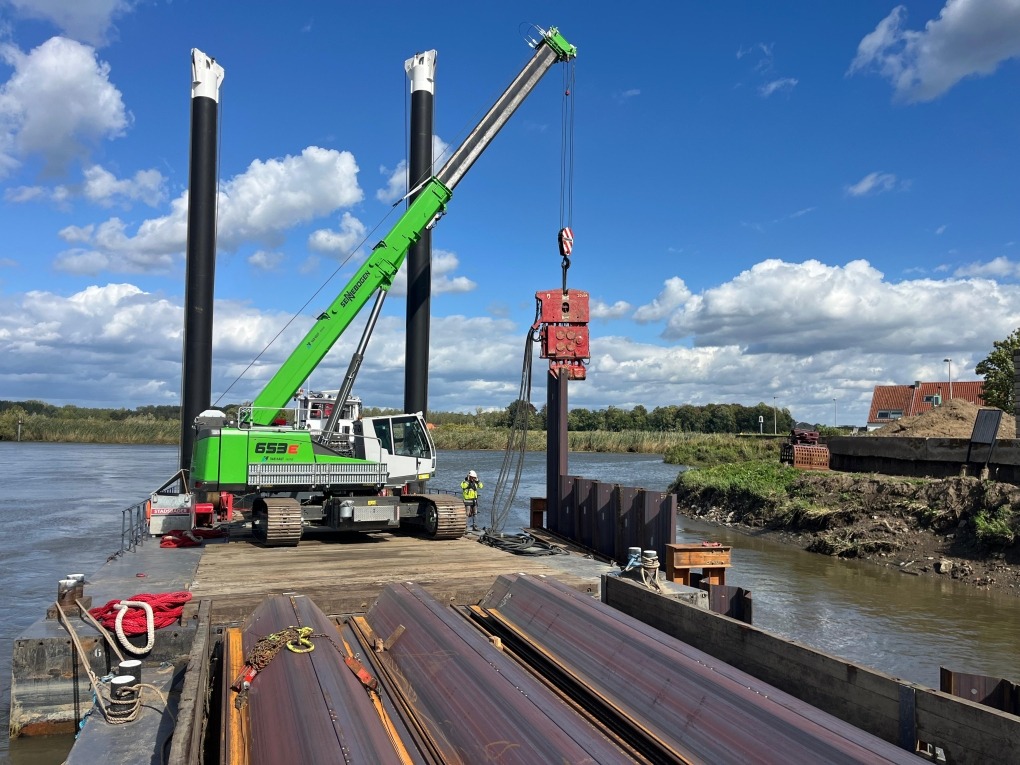 In Mechelen, near the Zennegat, we are repairing the bank protection on the right bank of the Zenne. We are repairing the damaged wall, installing dam boards and ensuring a safe environment.